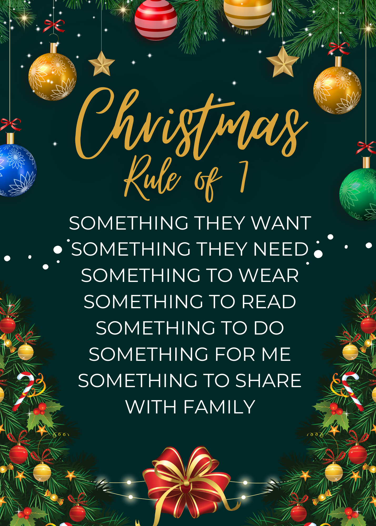 With a house full of “stuff”, (and of course the fact that we are renovating our new house), we are limited in what we have to spend this year. The rule of 7 is the best way to work to a tight budget, as well as limit and prioritise gifts within the following gift groups: