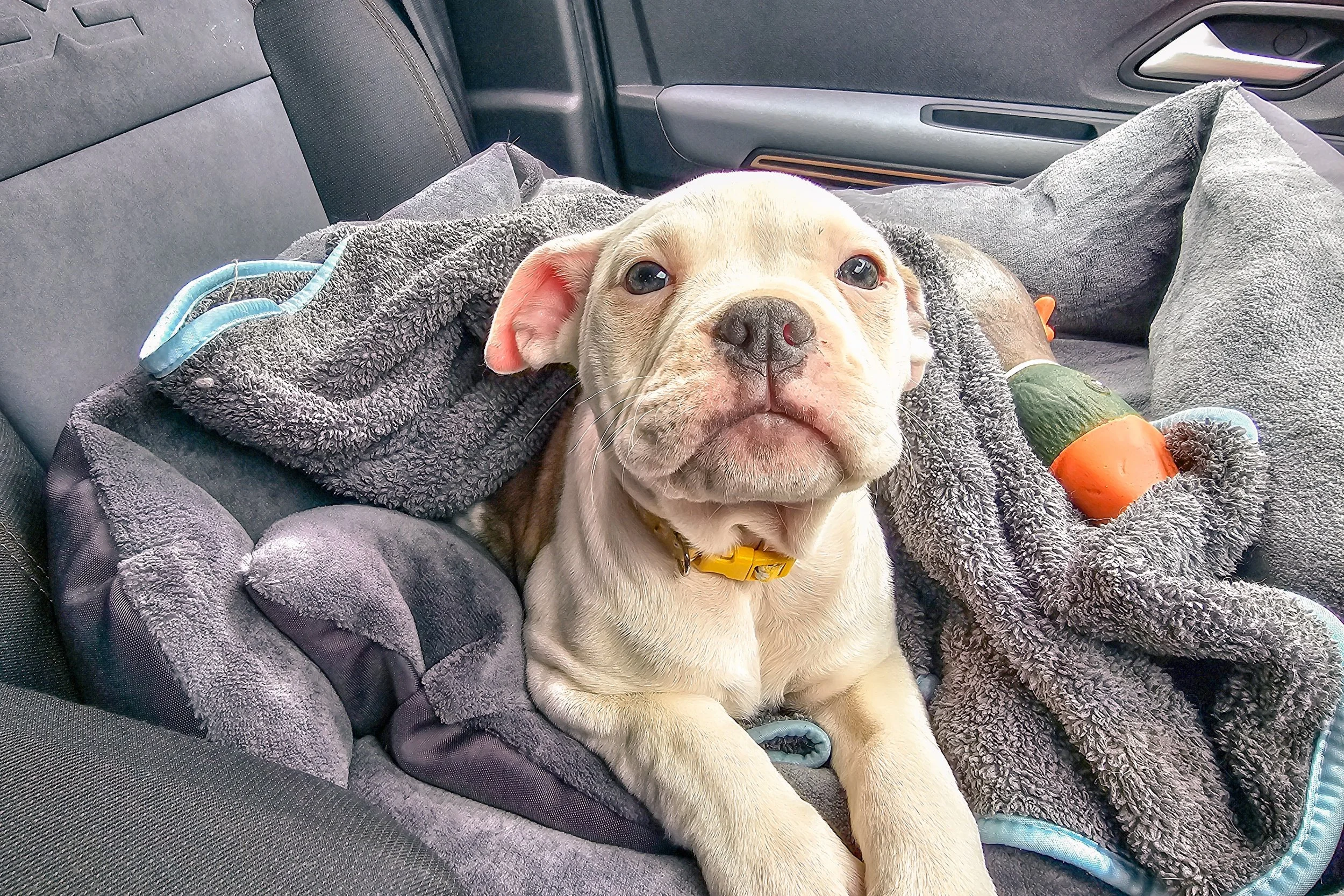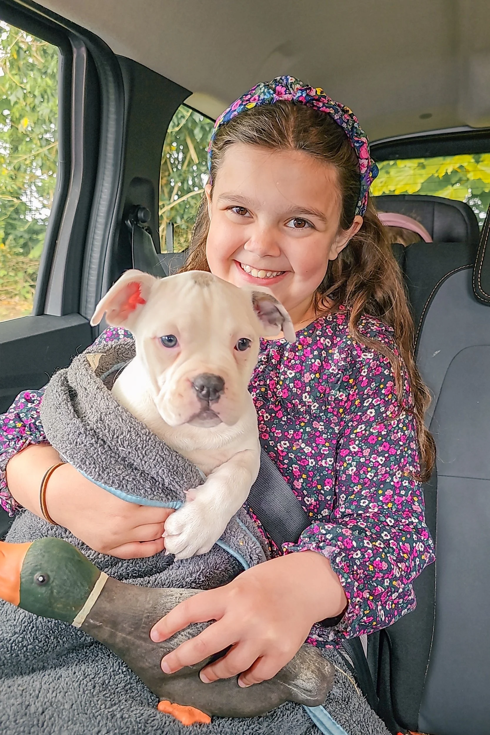 After a successful visit with Jessie and the children and a video call with John who had to work on the day, we agreed to adopt Jessie. I signed the paperwork, paid the fee, wrapped our new little baby in her blanket, popped her in the car with Pickle and started the journey home with nothing but a bag with enough food for a couple of days, her vaccination record, and a huge smile on everyone's faces.
